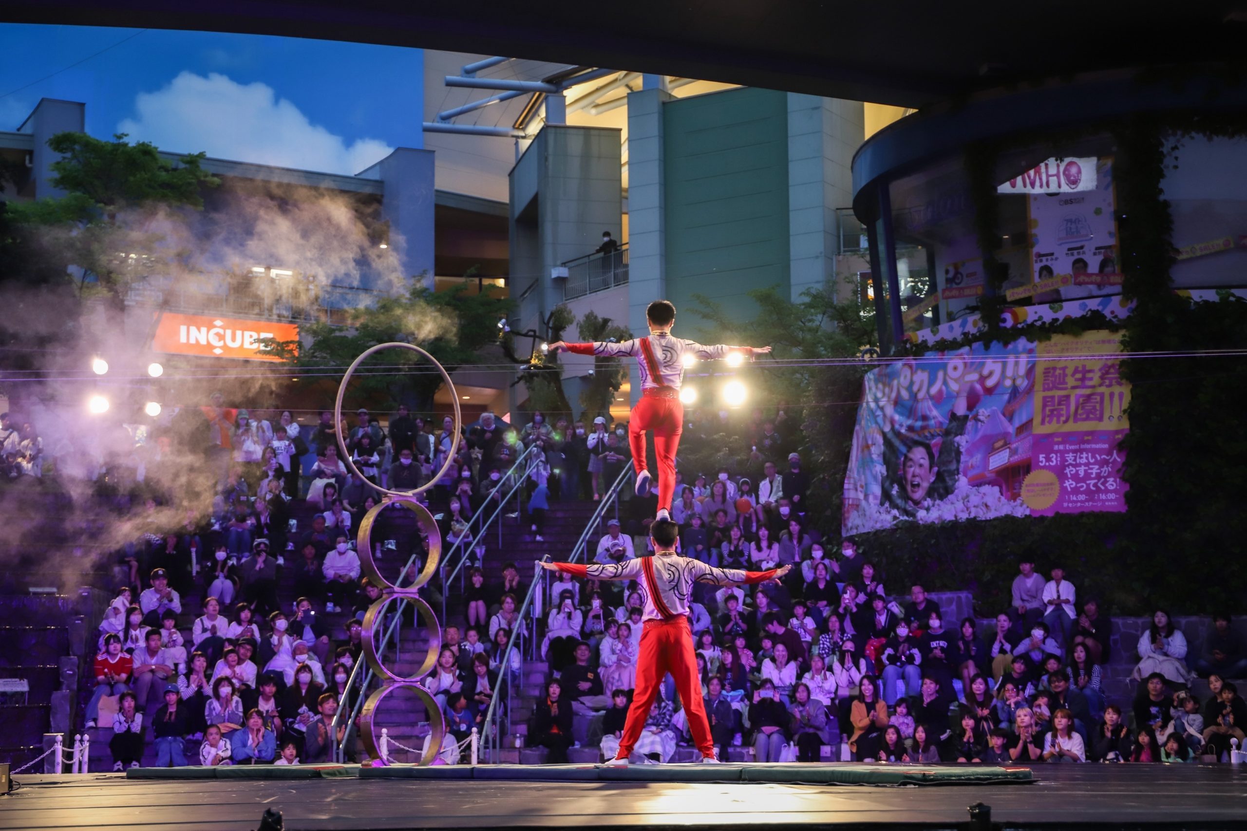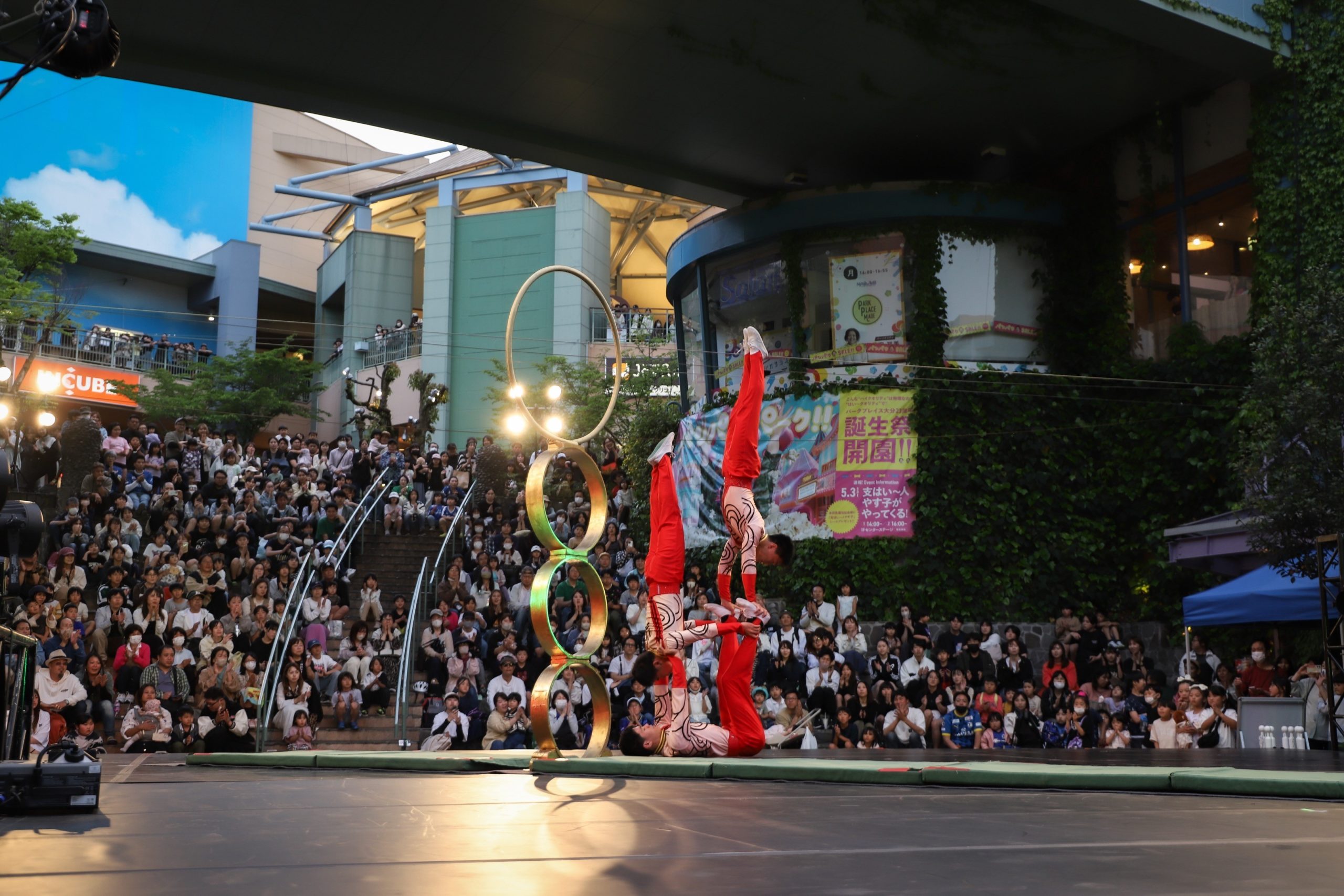毎年パークプレイス大分で開催される「丘の上のサーカス」、昨年に続き、今年も参加しました。たくさんの人にご覧いただき、メンバーも新しい出会いと喝采に大興奮でした!